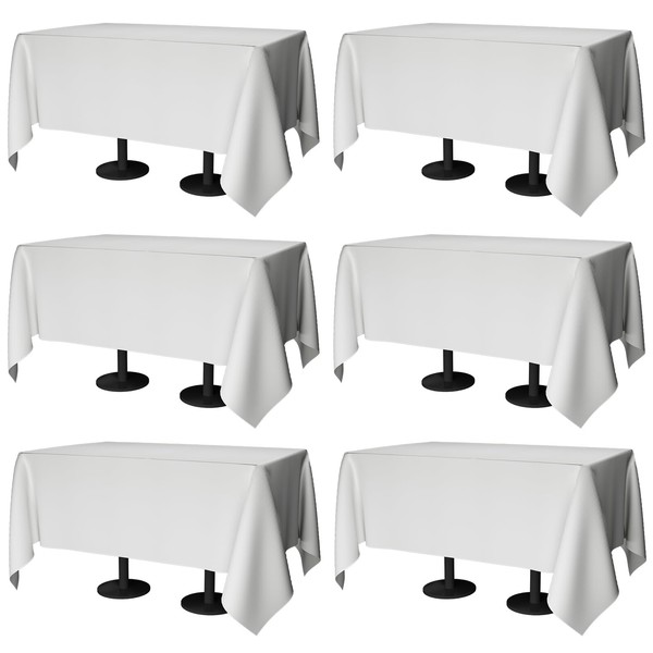 Winwingo Table Cloth Rectangle Table Cover 70x120 Inch, Washable Stain and Wrinkle Resistant Polyester 6 Pack Table Cover for Dining Tables, Various Parties and Camping (White)