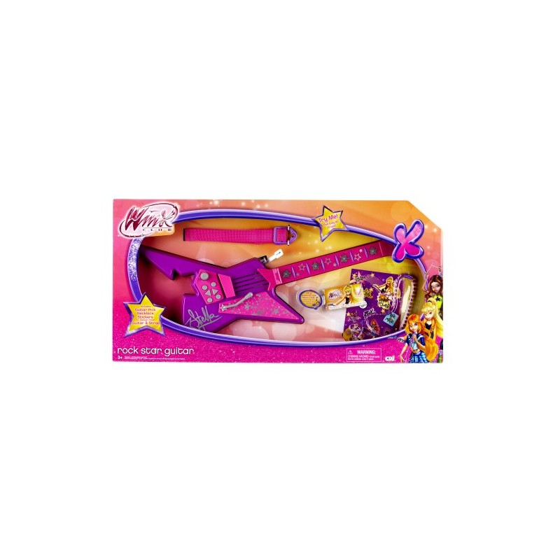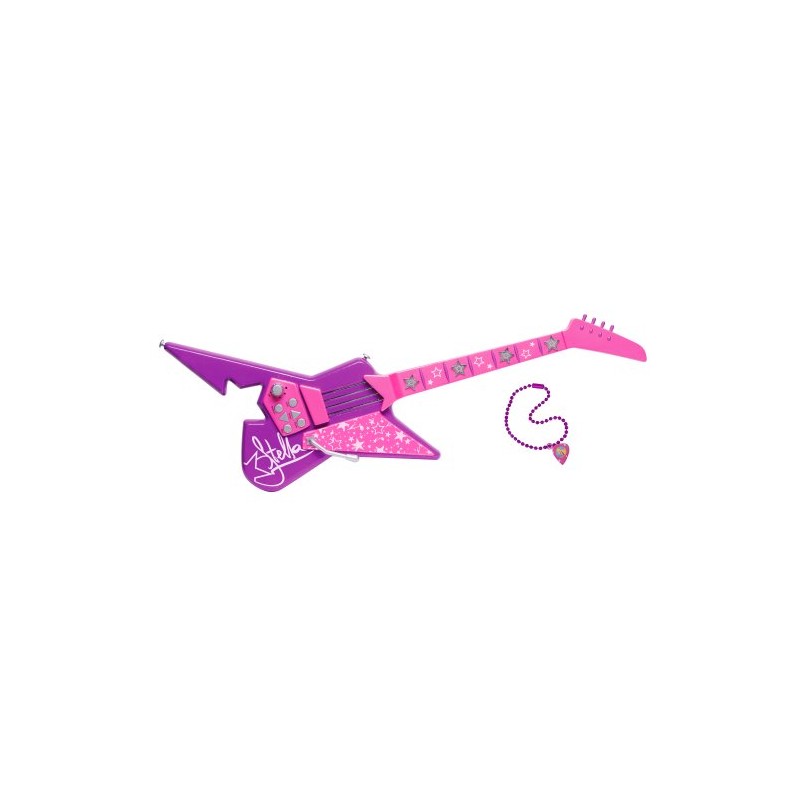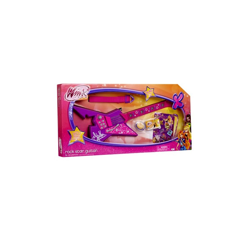 Take the stage with this Winx Club Rock Star Guitar. Featuring The Believix Song, drums, bass, whammy bar, and even tempo control, it looks and plays like Stella’s guitar. Add your own riffs and press the light-up star buttons on the neck to add style to the songs. Also includes guitar strap, Stella’s guitar pick necklace, and stickers to decorate and personalize your guitar.