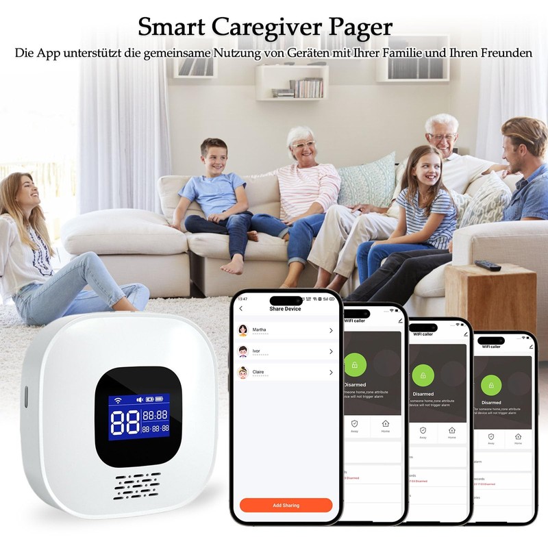 - Surveillance à distance par l'app: Gestion à distance via Tuya Smart or Smart Life app. Lorsque le bouton est déclenché, l'alarme retentit et l'APP reçoit la notification d'alarme. En partageant l'appareil via l'application, vous pouvez vérifier l'état de l'alarme avec vos frères et sœurs.