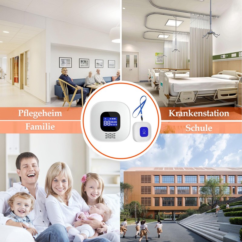 - Easy to use: The sonnette d'appel is easy to use, il suffit d'installer le récepteur dans an environment WiFi and le bouton de panique est instantanément disponible (couplage d'usine effectué). Lorsque vous avez besoin d'aide, il vous suffit d'appuyer sur le bouton d'alerte d'appel de l'aidant, et un signal est envoyé directement au récepteur de téléavertisseur de l'aidant.