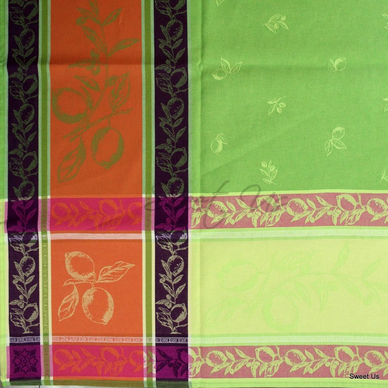Sweet Us Citronnier Wipeable Tablecloth Spill Resistant Teflon Coated, Floral Cotton French Provencal Tablecloth for Square Tables, Table Cover for Indoor and Outdoors, Verdant Citrus, 63 x 63