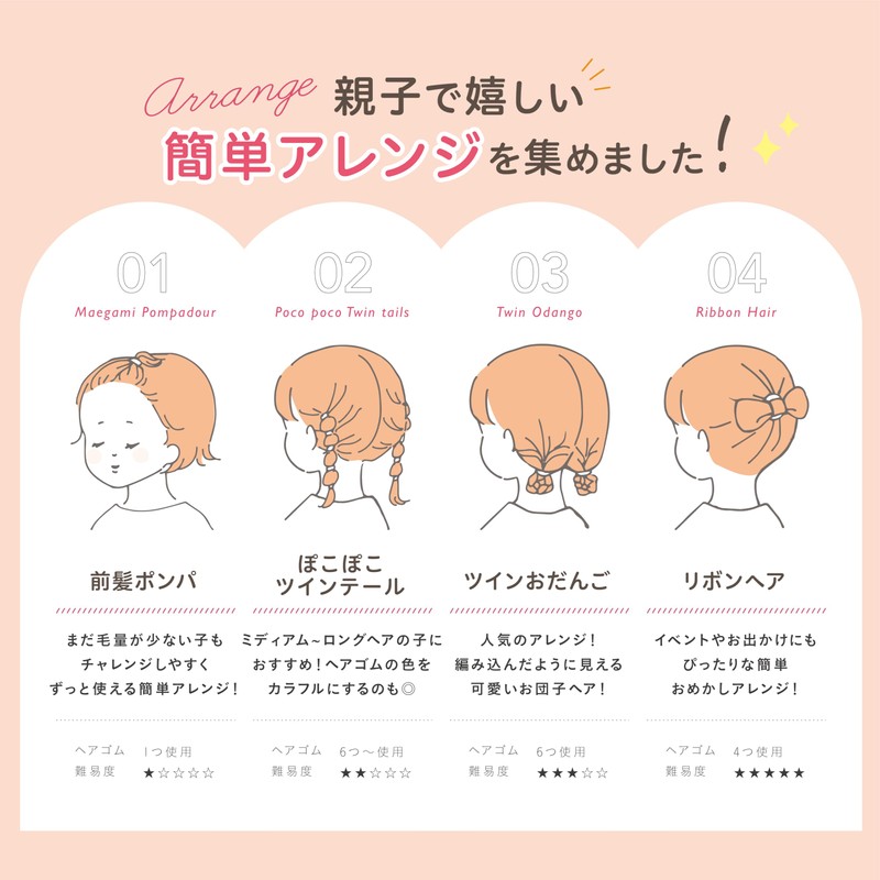 - (Supervised by a Mom's Beautician) You can do it immediately. Comes with a hair arrangement guide that can be read on your smartphone. Professional-approved ease of use and quality. Make your daily hair set smooth and show your child's cuteness
