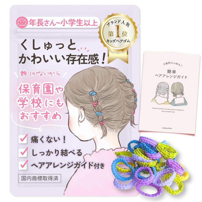 wippyperro [Easy to Twist & Cute] Hair Arrangement Guide Included, Hair Elastic for Children, Tangle-Free, Babies, Painless, Nursery School (Soft Summer)