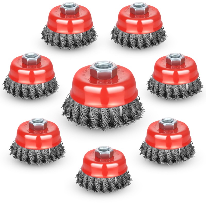 Wire Cup Brush for Angle Grinder, 8 Pack 3 inch Wire Cup Brush for Grinders, 5/8 Inch-11 Threaded Arbor, Twisted Knotted Wire Brush for Heavy Cleaning Rust, Stripping and Abrasive