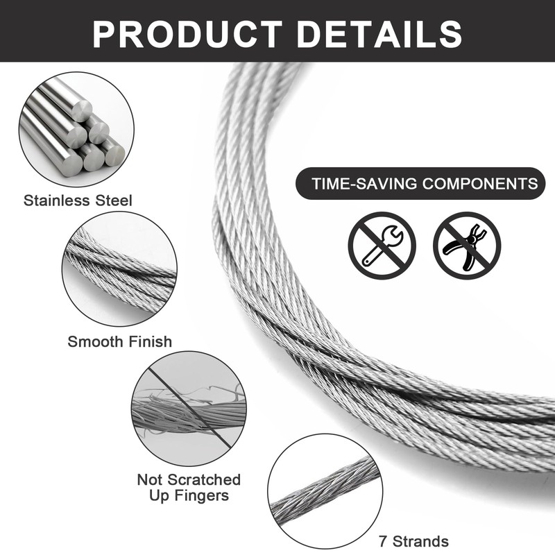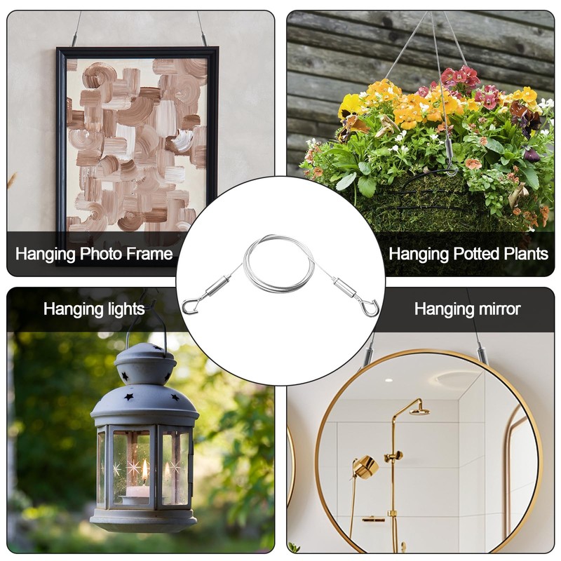 - ADJUSTABLE HANGING SYSTEM This set includes 6 pieces 78.7 inch stainless steel rope with end hook, great for hanging pictures, plant containers, mirrors and more. With the wire rope tensioner, you can easily adjust the hanging height according to your needs and adapt it perfectly to different decoration styles.