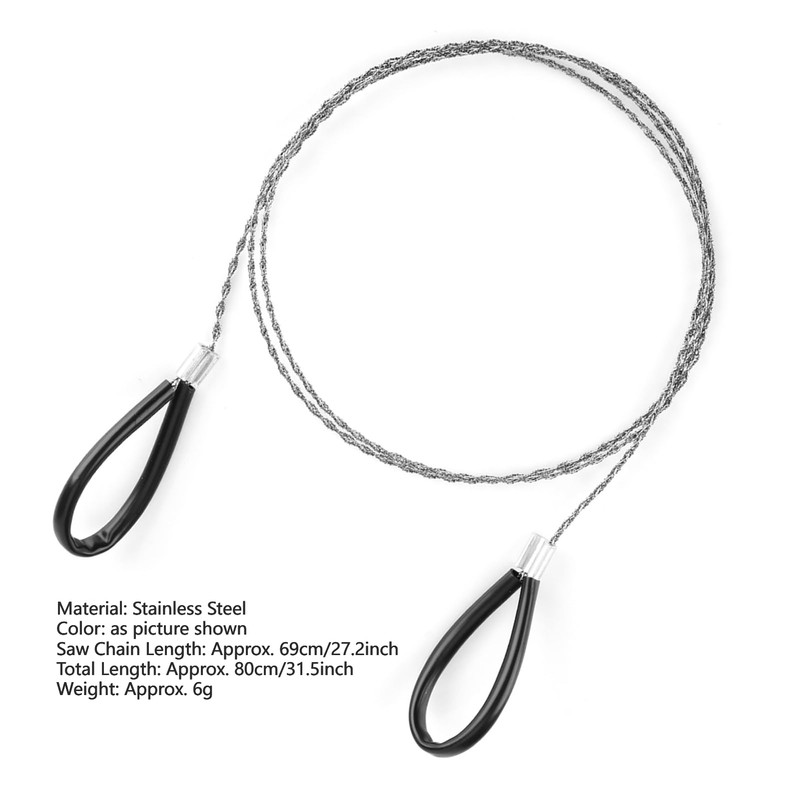 - ▶Easy to carry: This emergency wire saw is light, flexible and easy to carry. The saw body is equipped with a unique double-ring handle design of the chain saw, so users only need to firmly grasp the handles at both ends.