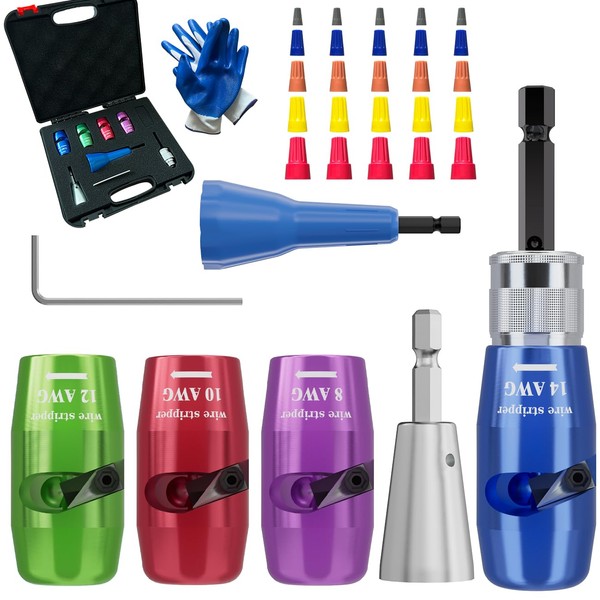 Wire Stripper 14-12-10-8 AWG for Cable Quick Stripping Tool, Wire Twister Connector, Wire Twister Tool Drill Bit, 2024 Upgraded Electrician Tool Kit and 25 Pieces Wire Connector Nuts