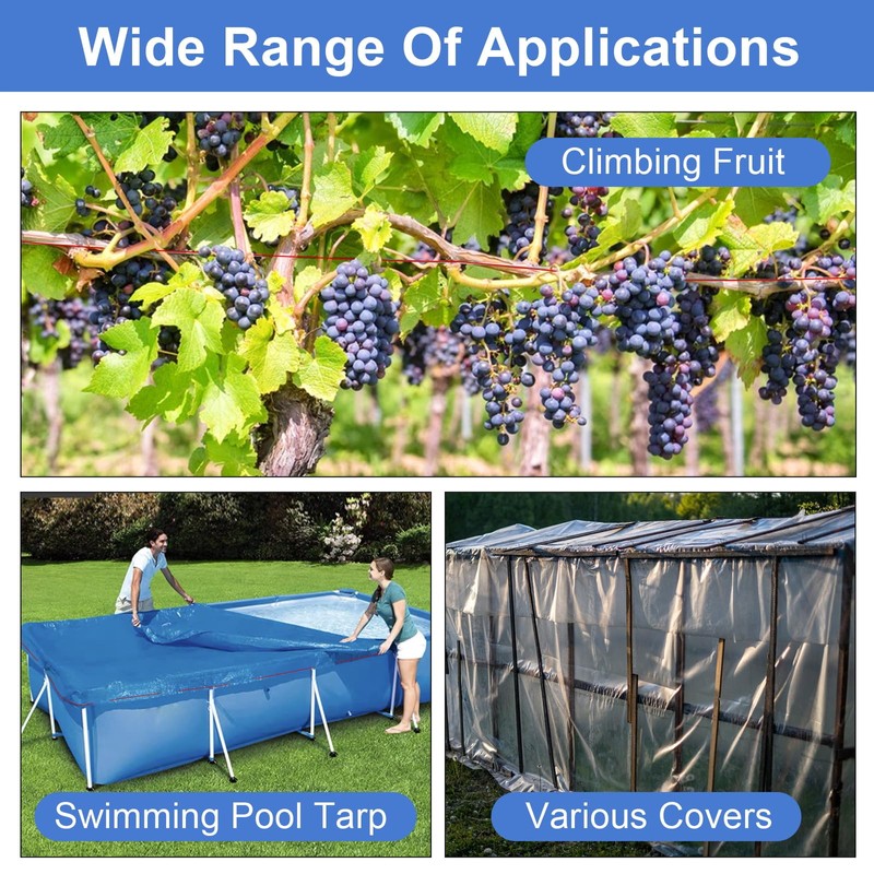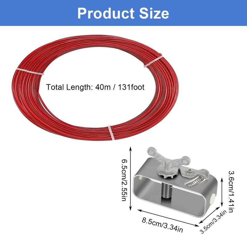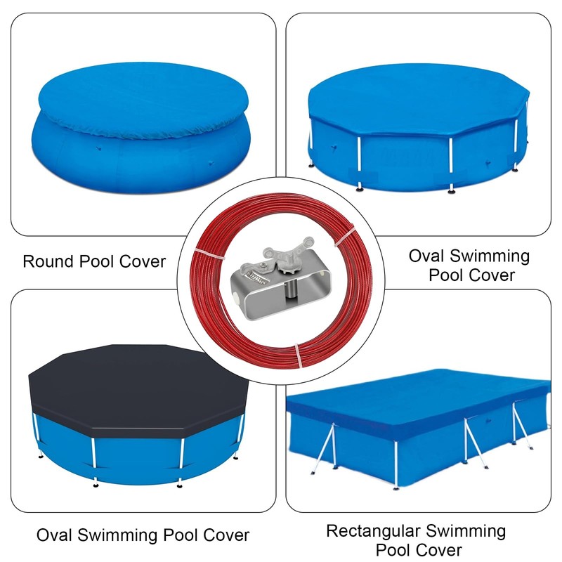 - Areas of application: steel wire tension rope for swimming pool tarpaulin, 131 feet (approx. 40 meters) long cable with improved high-performance winch, suitable for all types of round, oval and rectangular swimming pools. Cable jacket only for above ground swimming pools in winter.
