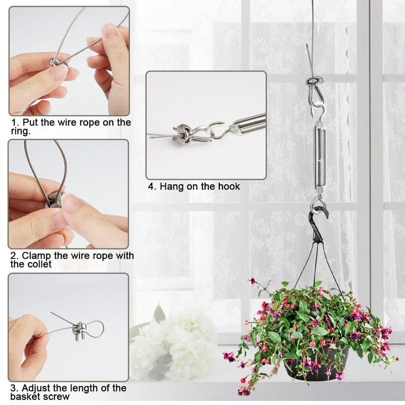 - Safe and durable: wire rope tensioner set for clothes comes with 2 pieces M6 turnbuckles, you can adjust the tension of the rope by adjusting the length. M3 rope clamps and collar made of stainless steel can ensure that the wire rope is stable and not saggy, to prevent the rope from accidentally loosening or slipping.