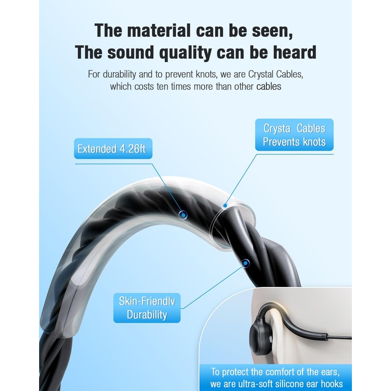 - ✅[Ergonomic Design & 0.88 Oz Ultra-Light Durable Material] QOEKUEY wired headphones open-Ear feature an enhanced ergonomic design satisfies different auricle wear and weigh only 0.88 Oz that is true “0” oppression, the headset with mic providing maximum comfort for you. These USB Wired Earbuds are durability and to prevent knots we are 6.56ft Crystal Wire, which costs ten times more than other wires, very flexible and durable for everyday use.
