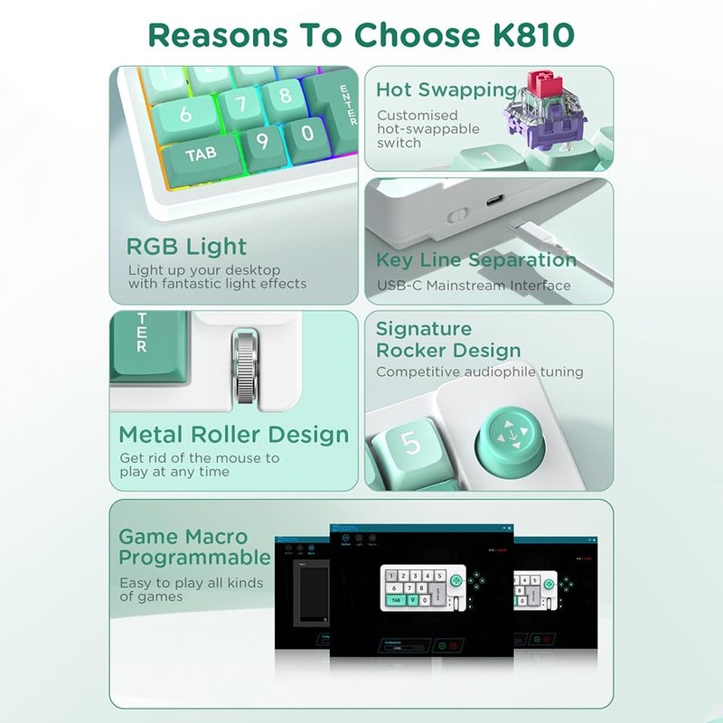 Wired Mechanical Game Small Keyboard with Joystick, Macro Definition RGB Backlight Adjustment, Full Key hot swappable Macro Definition, Keypad Suitable for Office Game (Green)