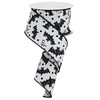 Wired Ribbon, White with Black Bats Halloween, 2.5 inches X 100 feet