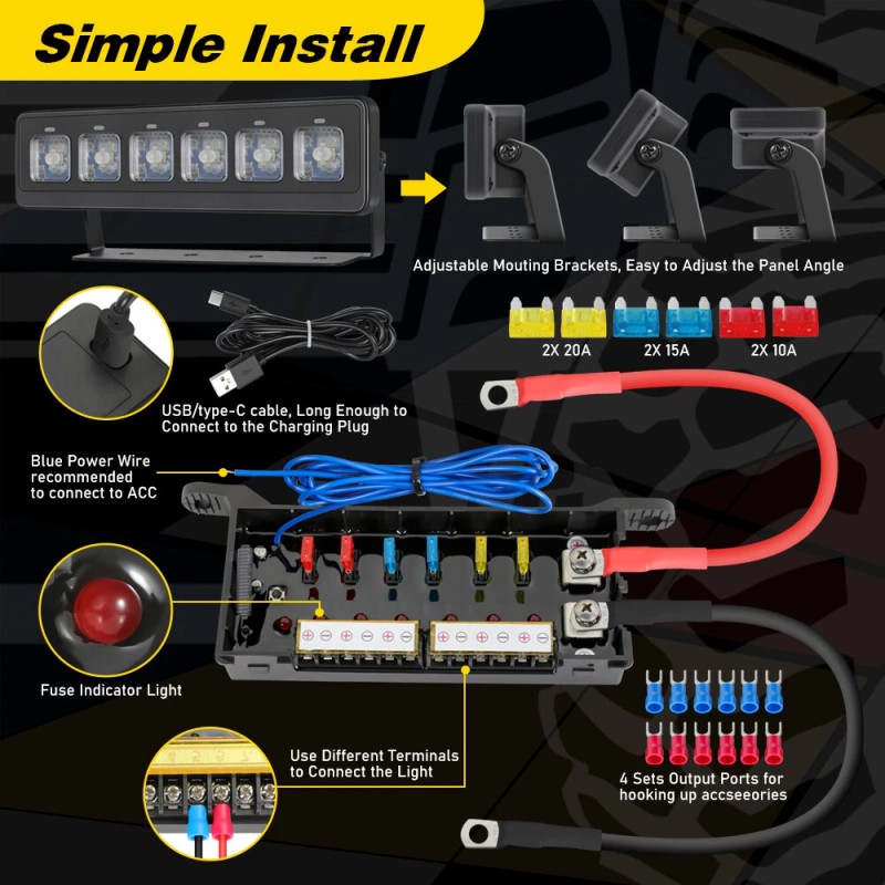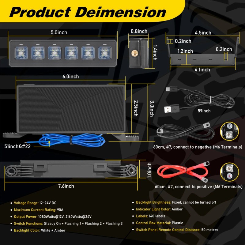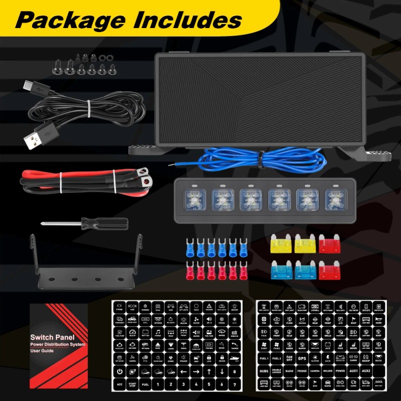 Wireless 6 Gang Switch Panel LED Light Bar Circuit Control Box Car RV Boat SUV