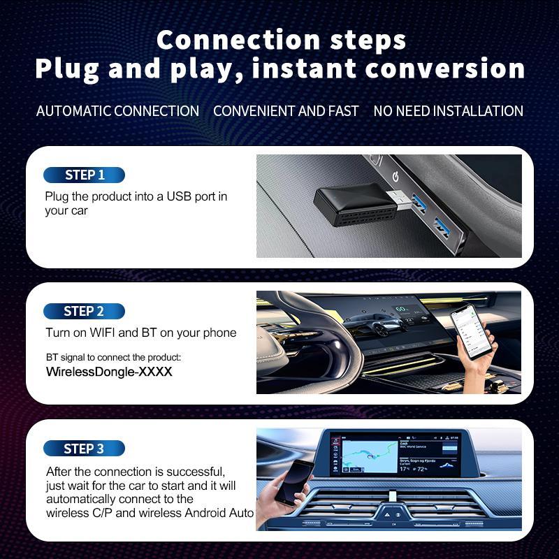 Wireless Adapter for CarPlay, Car Wireless Dongle, Car Wireless Control Dongle, Plug & Play Car Electrical Appliances for 2015 Year Later Cars & Phone