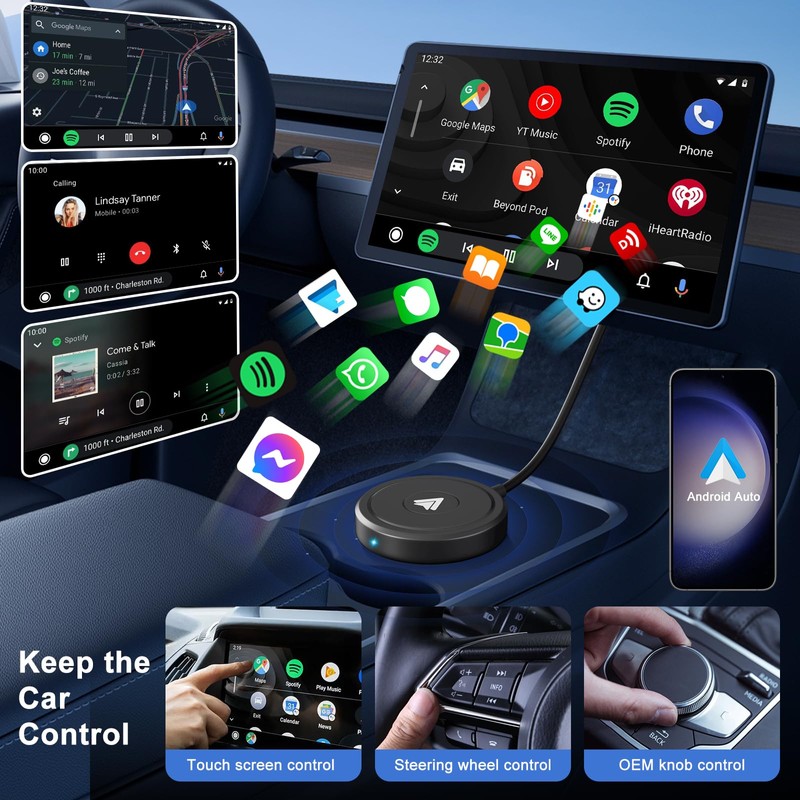 • 【Upgraded Wireless Android Auto Adapter】 This wireless Android Auto adapter is the latest official version in 2024, easily convert your wireless Android Auto adapter from wired Android Auto to wireless. You can continue to use full Android Auto features and retain original car operations, such as navigation, music playback, Siri assistant, and calls. Say goodbye to tangled wires and experience the convenience of wireless connectivity with the LXJADAP wireless android car adapter!