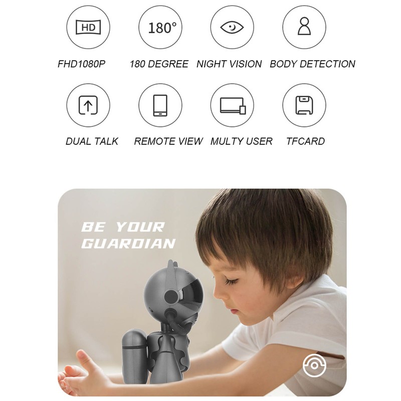 Wireless Baby Monitor 1080P Video Voice Talking Robot Shaped Long Endurance Indoor Security Camera Gray Titanium