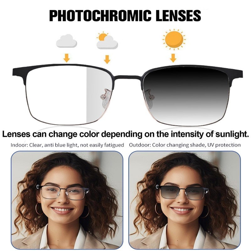 - Photochromic Glasses: Our phototropic lenses are transparent indoors, automatically dim to the tint of sunglasses in bright light, and once removed from bright light, the lenses gradually return to their original clarity, safeguarding your vision