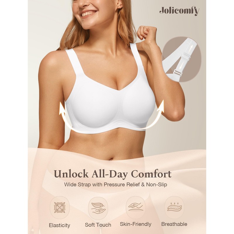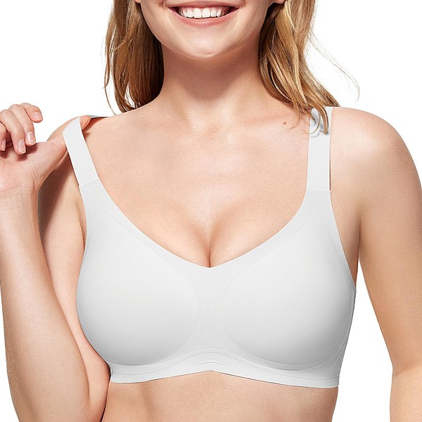 Wireless Bras Full Support Bralettes for Women Push Up No Wire Bras Smoothing No Show Bra(White,L)
