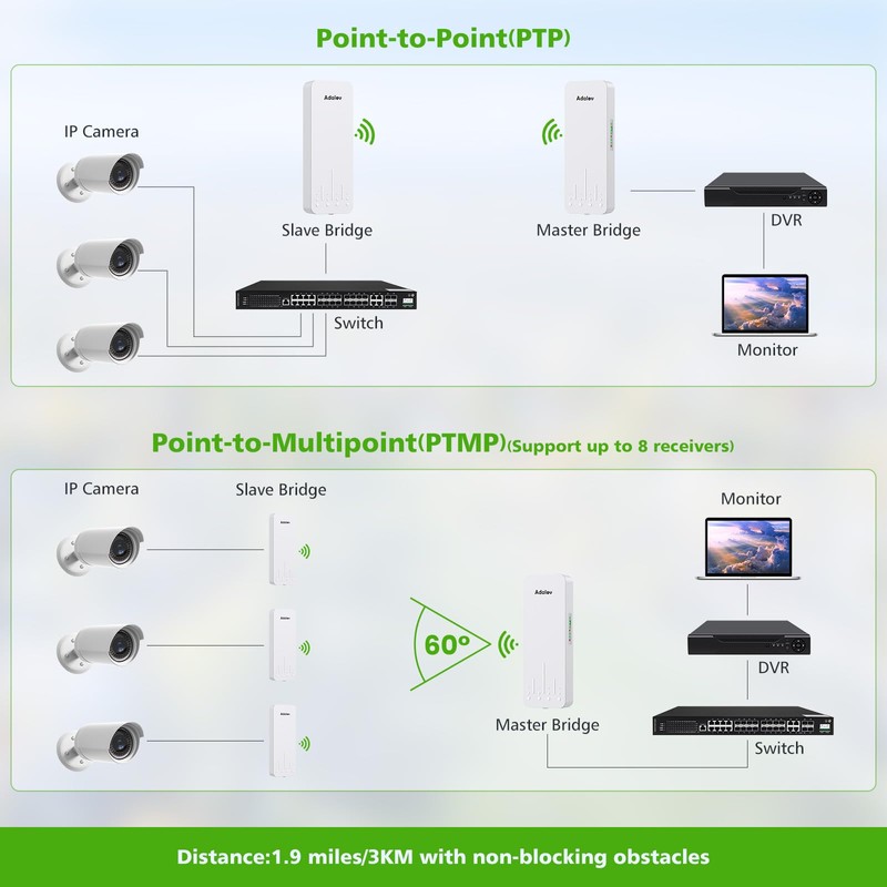 Adalov Wireless Bridge, 3KM 5.8G Point to Point Outdoor CPE, Long Range WiFi ...
