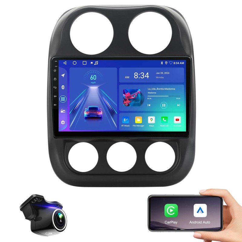 Wireless CarPlay Android Auto Radio for Jeep Patriot Compass 2010-2016 | 10" QLED Touchscreen | 2GB RAM 64GB | GPS Navigation | Retains Steering Controls