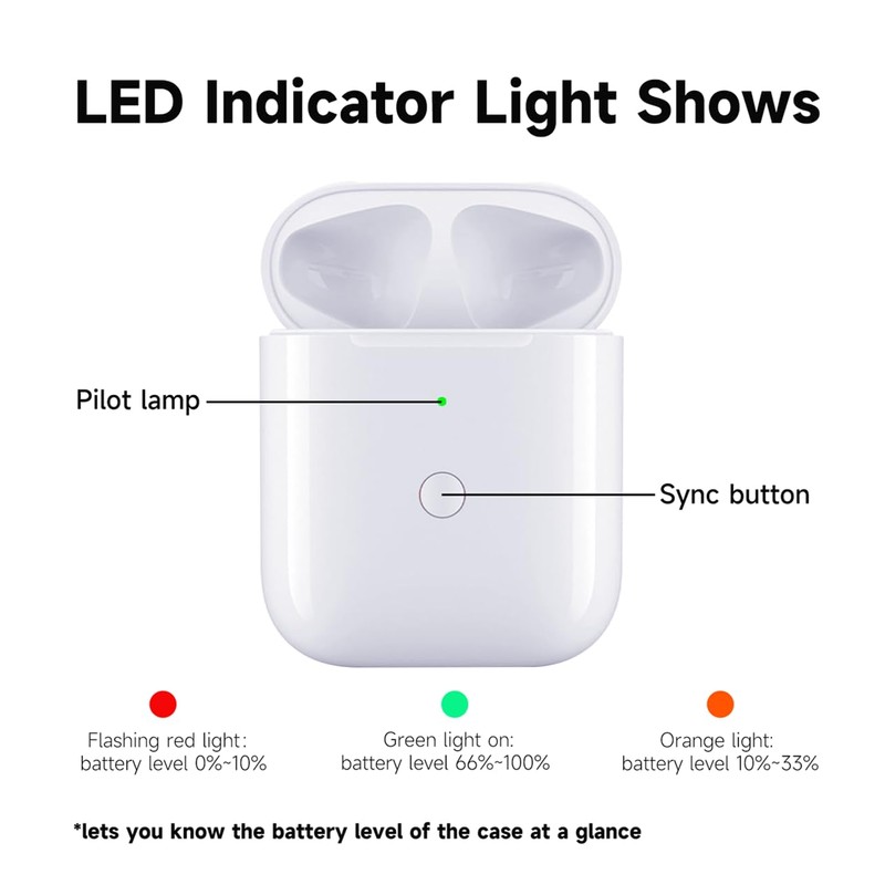 - 【Fast Bluetooth Pairing】: Pairing with iPhone is super simple; just open the cover and press the button on the front, it can be easily paired automatically like the original Air pod 1/Airpod 2 pairing; the charging case will automatically connect when used again; eliminating the trouble of manual connection every time