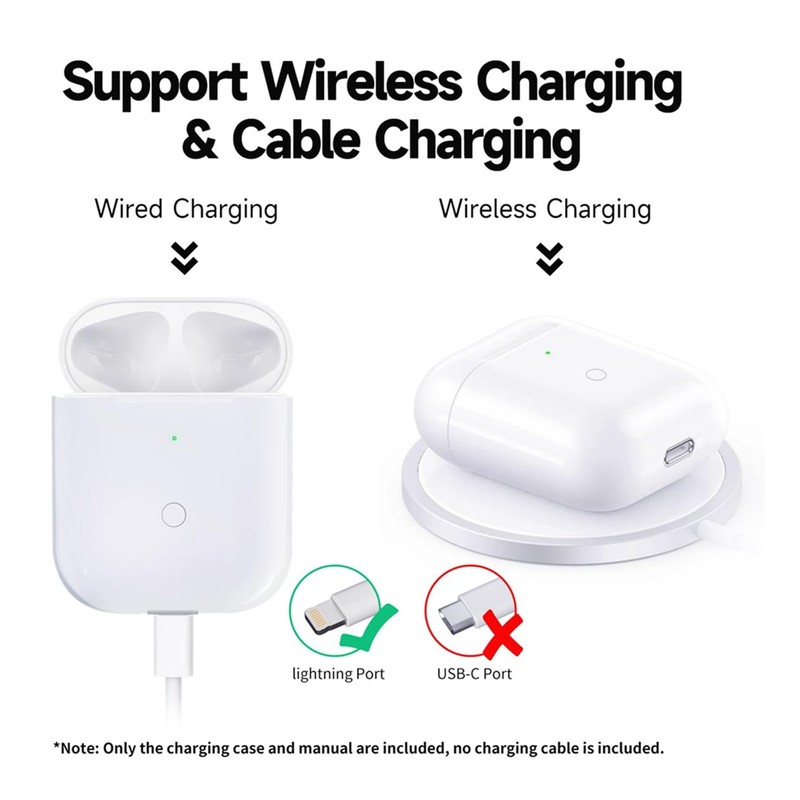 - 【Wired and Wireless Charging】: The Air pods 1 and 2 charger case compatible with wireless and wired charging. Wireless and wired charging allow you to enjoy convenient charging and fast charging. It is also recommended to use the original charging cable, wireless charging is slower than the original charging cable