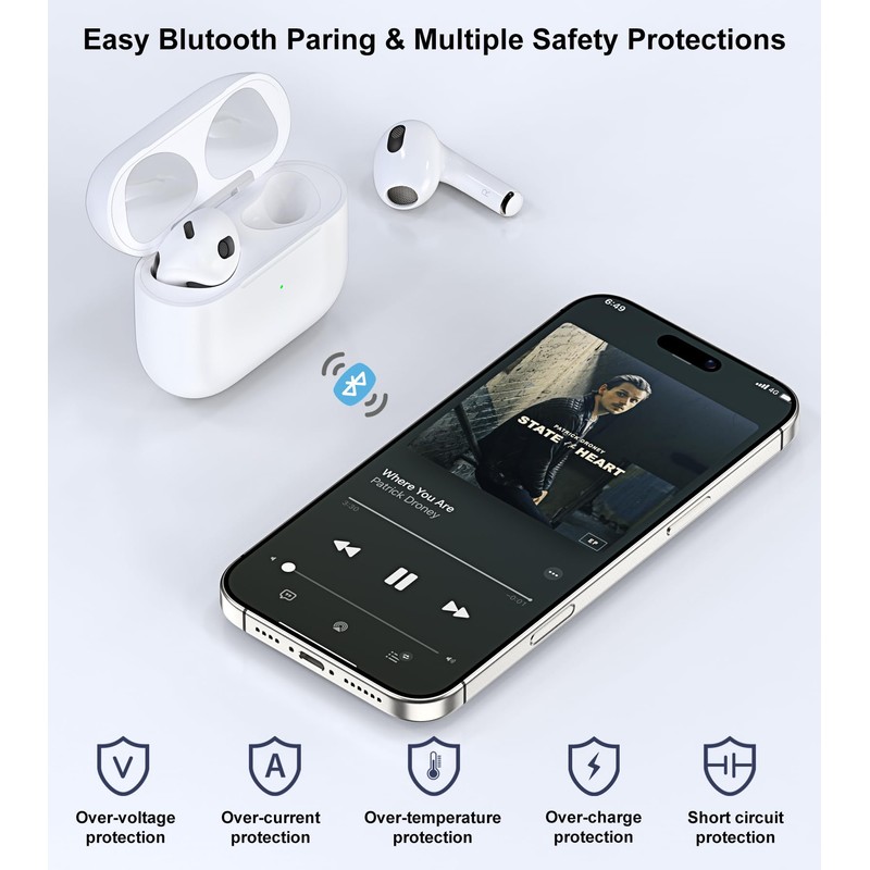 - Bluetooth Quick Pairing: The AirPods 3 replacement case can easily connect with the one-touch sync button. Once paired, the AirPods will automatically connect each time when you open the case, no manual hassle