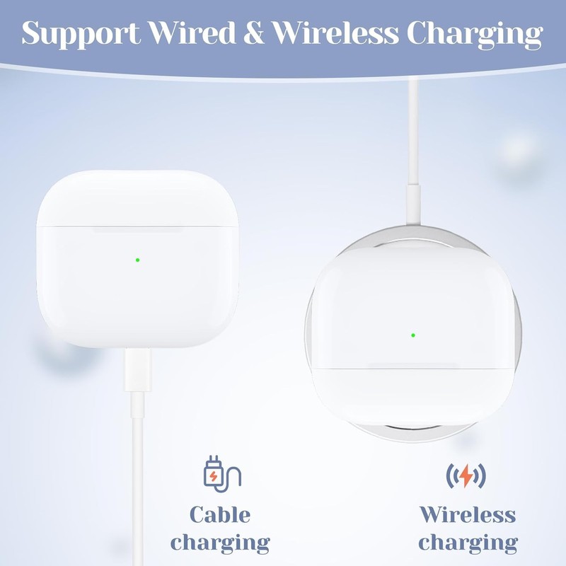 - Wireless and Wire Charging: The replacement charging case for AirPod 3rd generation supports wireless charging or L-Port wired charging. Both Air pods earphones need to be placed in the charging case for pairing and charging to begin.