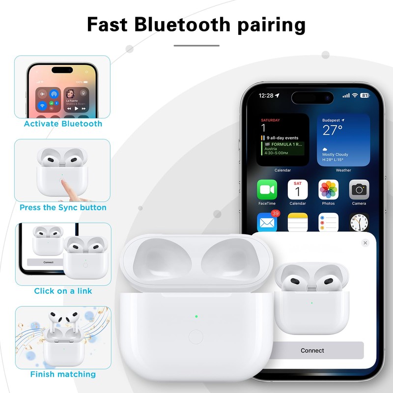 - Easy Bluetooth Pairing: The first time you need to operate the Bluetooth match, and the second time you open the charging case, the air pod charging case will automatically connect to your device. headphones are not included in it.