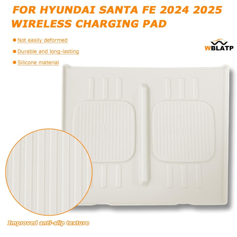 - 【More Benefits】Hyundai Santa Fe Accessories: -- This premium silicone wireless charging mat delivers non-slip stability and scratch-resistant defense, shielding against dust and daily wear. Engineered with rugged durability and a sleek finish, it elevates your car’s interior while keeping devices securely charged.