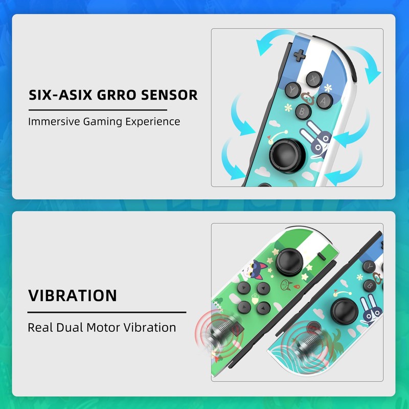 - 【Dual Vibration & 6-Axis Sensor】Each switch controllers joystick is equipped with a 6-axis gyroscope for precise aiming and shooting, while using the latest motion-sensing technology and the latest vibration to provide a great sense of control, making you get a more realistic experience, more accurate strikes and more fantastic controls.