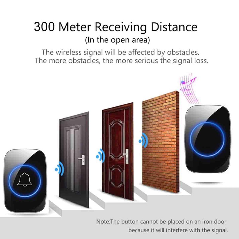 3. Using the same doorbell in a range will not interfere with each other! The use of wireless high-frequency transmission technology, same frequency and different codes, effectively avoids the troubles caused by mutual interference and false noises between neighbors.