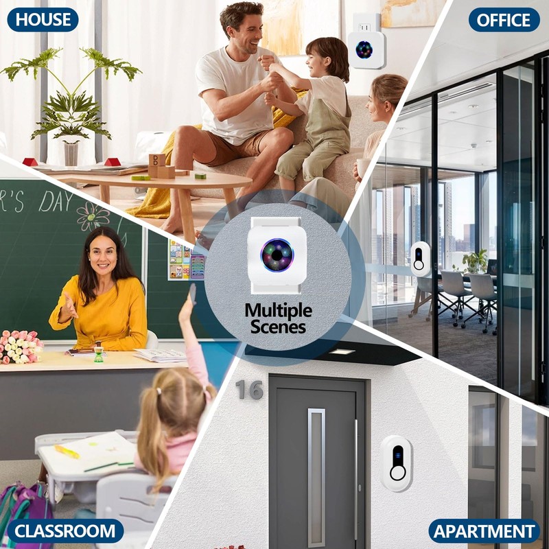 - 【55 Smart Ringtones】Perfect wireless doorbell kit with 55 different ringtones and 5 levels of adjustable volume from 0db to 110db. Easily select and set your favorite ringtones.