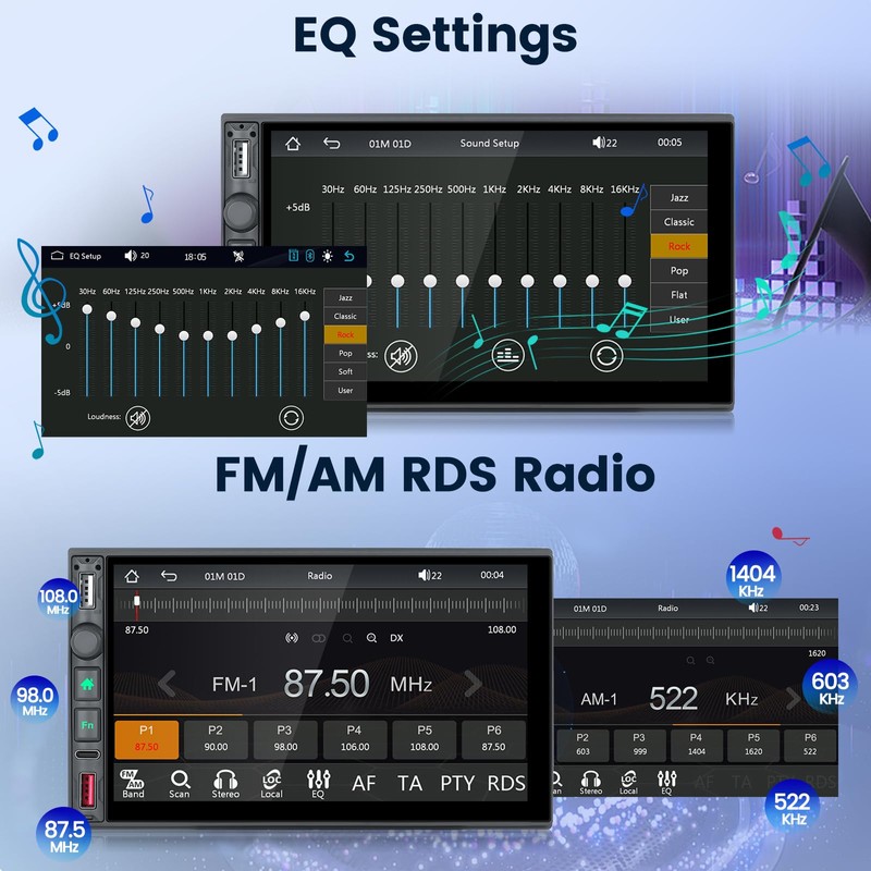 - FM/AM RDS Radio & HD Touch Screen: RDS AM/FM radio will provide you with more channel choices.7 inch 1024 * 600 pixel multi-touch capacitive screen supports 1080P FHD video, giving you a better touch experience.