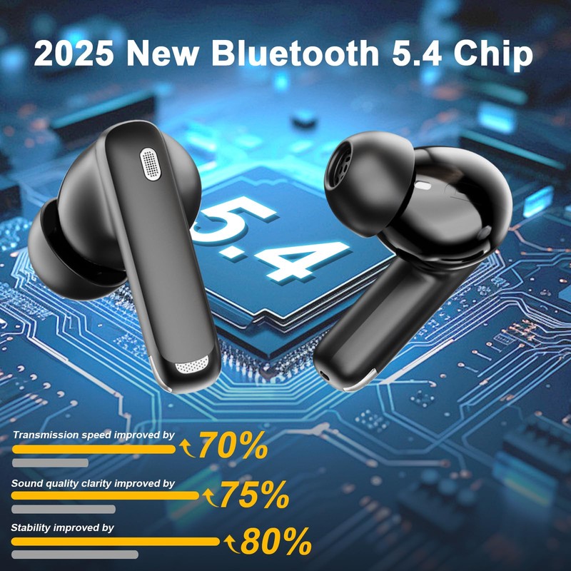 - Innovative Bluetooth V5.4 Technology and Instant Pairing: The wireless earbuds adopt Bluetooth 5.4 technology, which ensures a more stable connection, lower delay and lower power consumption. With a range of up to 15m, you don't have to worry about disconnection of the bluetooth earbuds. Taken from the charging case, wireless headphones will be paired with each other automatically. In just a few seconds, you can immerse yourself in beautiful music world.