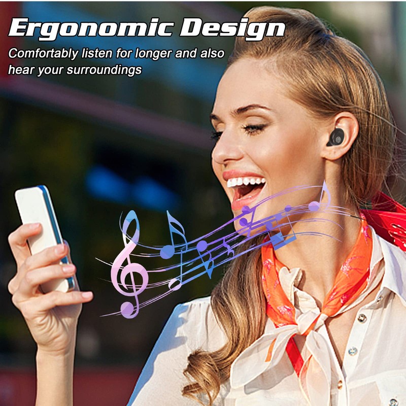 - 【Smart Touch Control】User friendly design and easy operation. By tapping the Bluetooth earphones to answer/reject the call, hang up the phone, wake up digitaql assistant, music play/pause, previous/next track, volume up/down.