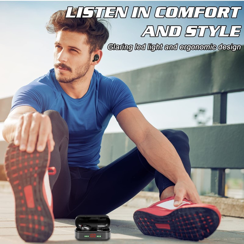 - 【Smart LED Digital Display】 Built In smart LED digital screen you can check battery consumption display anytime. Charging case shows battery charging levels from 1%-100%.