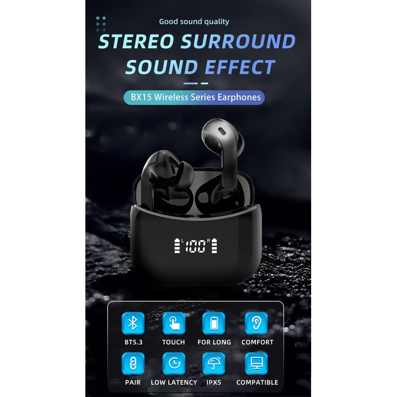 Wireless Earbuds, Bluetooth 5.3 Headphones In Ear with 4 ENC Noise Cancelling Mic, Btootos New Bluetooth Earbuds Mini Deep Bass Stereo Sound, 36H Playtime LED Display Wireless Earphones X15 Waterproof