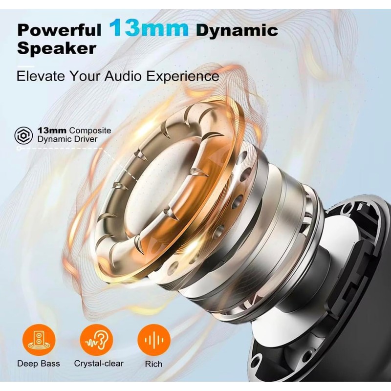 - [HIGH-FIDELITY AUDIO & ENC NOISE CANCELLATION]: The 13mm professional speaker unit and composite vibration membrane deliver powerful bass and full midrange for a richer sound experience. With ENC noise-cancelling technology and 4 microphones, external noise is effectively blocked, ensuring crystal-clear calls and first-class speech recognition.