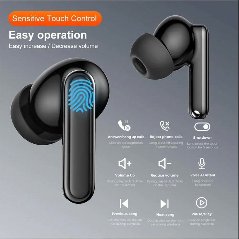 - [IPX4 WATERPROOF TECHNOLOGY]: These wireless earbuds are equipped with advanced IPX4 nano-coating technology, offering excellent protection against sweat and water. Perfect for intense workouts, runs, and outdoor activities, they keep internal components safe, ensuring long-lasting performance. With smart touch control, you can easily manage music, answer calls, or adjust volume with just a tap. Designed to be lightweight and ergonomic, they provide an optimal experience during your sports sessions.