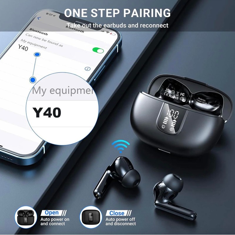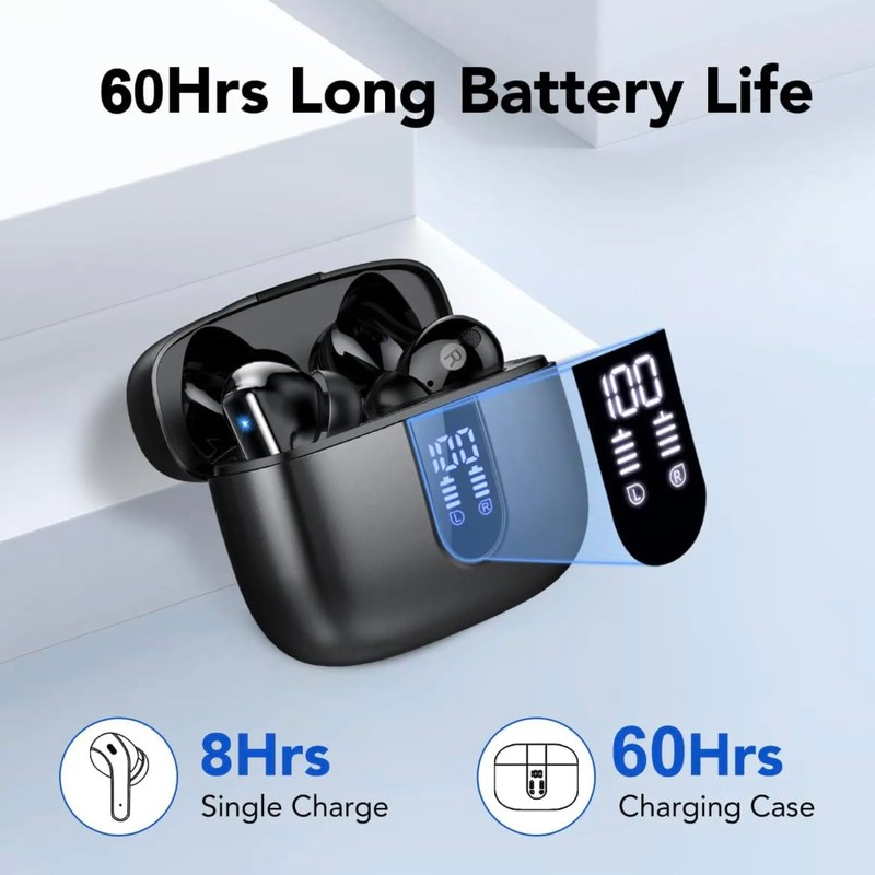 - [42-HOUR PLAYTIME & LED DISPLAY]: Enjoy 6-8 hours of music on a single charge, and up to 42 hours with the charging case. standby time 140H, The smart LED display shows real-time battery levels for both the earbuds and the charging case, so you’ll always know when it’s time to charge. With USB-C fast charging, you can recharge quickly and efficiently. The earbuds are compatible with Android, iOS, laptops, smartphones, tablet, computers, and most devices.