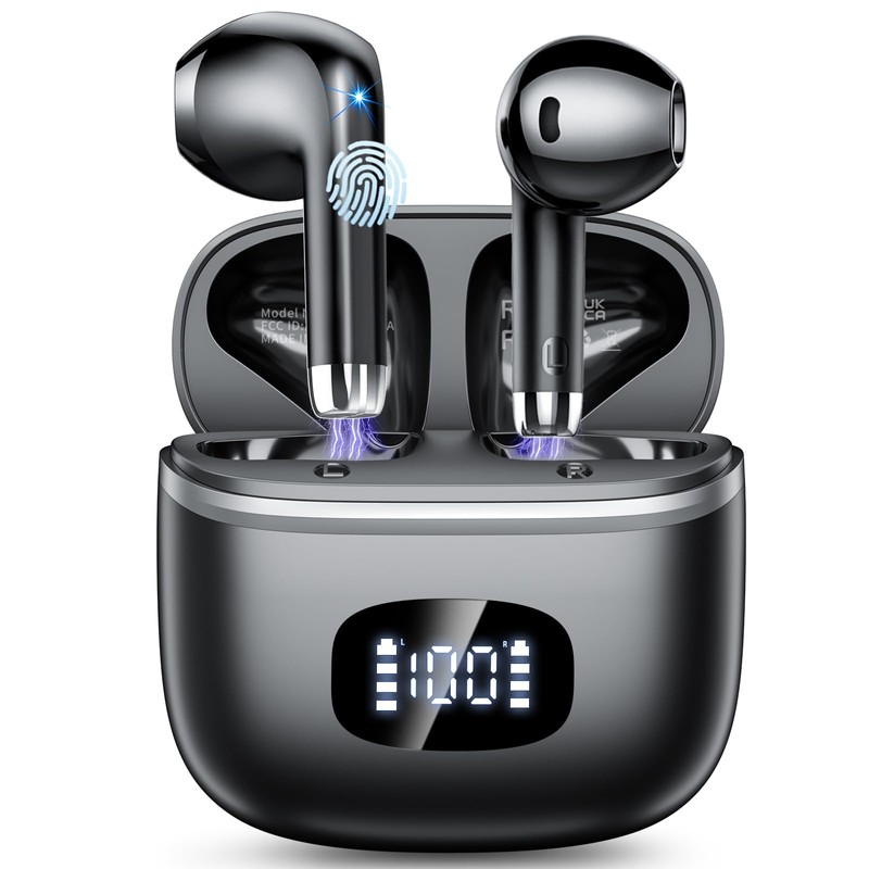 - 40 Hours Playtime and Dual LED Display : Enjoy 7 hours of playtime with a single earbud, and up to 40 hours with the charging case. The high-capacity case provides 4 full charges, while the fast Type-C charging port keeps you ready for action. The dual LED display shows battery levels and charging status, perfect for your in ear headphones wireless needs throughout the day.
