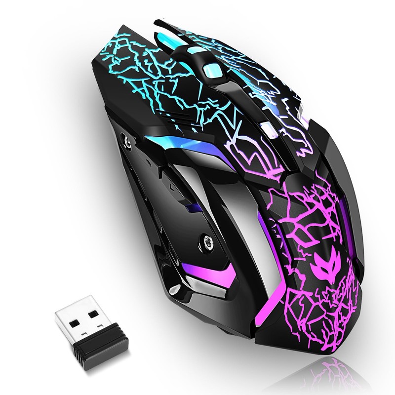 Wireless Gaming Mouse, Rechargeable Wireless Computer Mouse with Type-C Fast Charging, Ergonomic Mouse with 3 Adjustable DPI, 6 Silent Buttons, LED Light, Long Battery Life for Laptop, PC, Mac