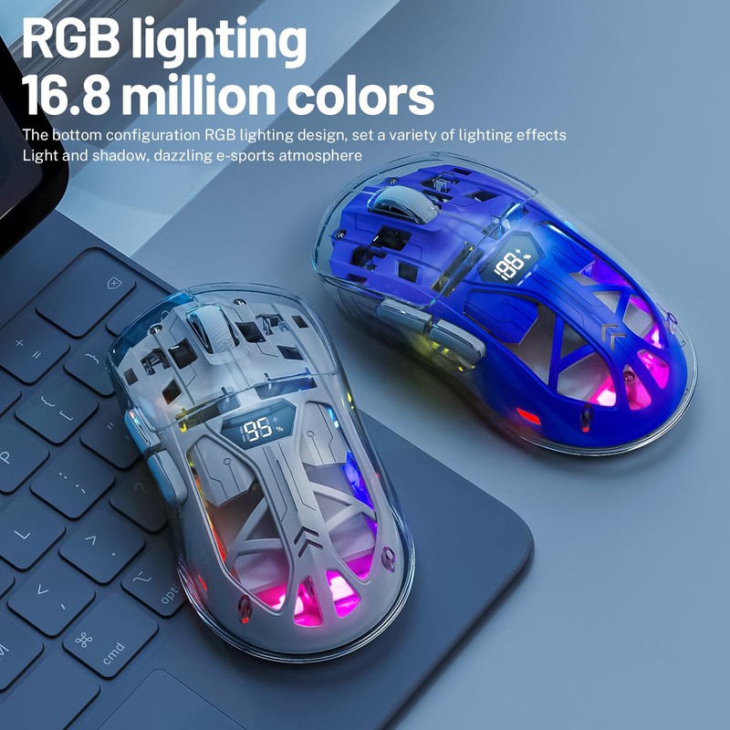 Wireless Gaming Mouse, Transparent RGB Mechanical Dual Mode Bluetooth Mouse, Digital Display, Silent Mice, 6 Buttons, Rechargeable, A Must-Have Cool USB Computer Mouse for Gaming and Esports (Blue)