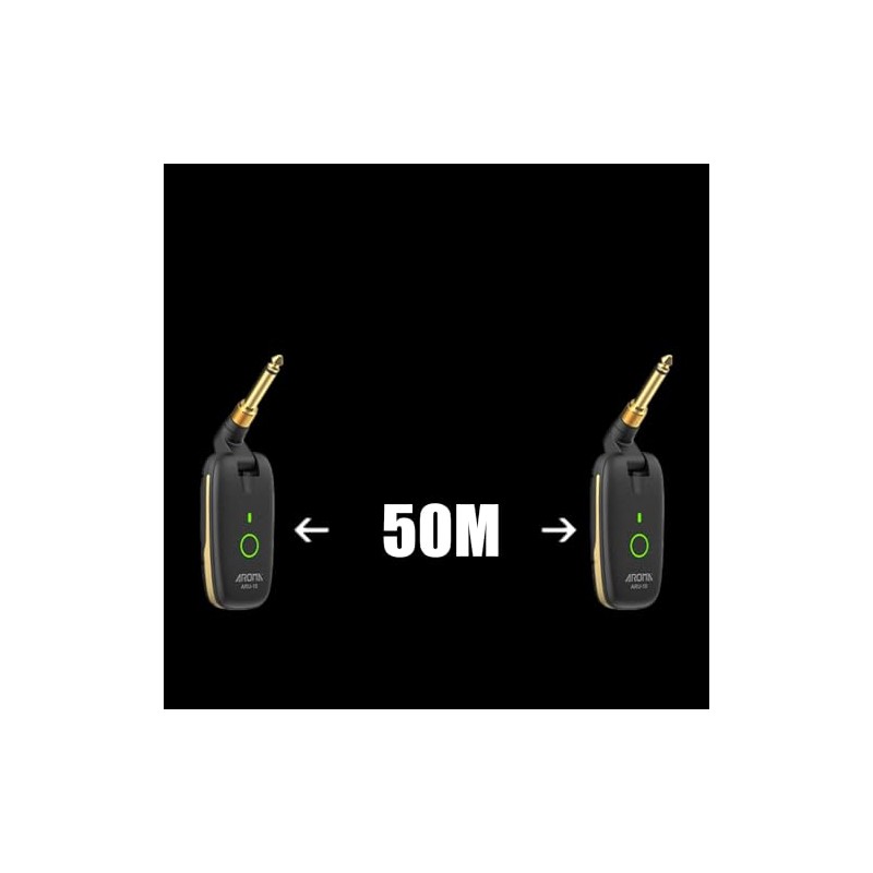 - 2.4ghz Uncompressed Signal:This wireless guitar system is 2.4GHz ISM frequency band,less than 5ms latency,low noise,low latency,more than 100 feet effective range.You are afforded the freedom to roam the stage for a truly dynamic performance