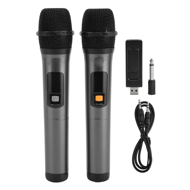 1、Long Distance Transmission: Handheld wireless microphone adopts UHF technology, long distance wireless transmission, can arrive a transmission distance of 20m/65.6ft. 2、Wide Frequency Range: UHF handheld wireless microphone has a wide frequency range, less interference, and easily and perfectly displays your voice. 3、Match Usage, USB Power Supply: UHF wireless microphones can be used with 3.5mm and 6.35mm female interface devices; USB receiver power is provided by USB chargers, powbank, etc. 4、Superior Sound: UHF mic have precise and complete electronic circuit control, capable of capturing rich, mellow sound from the sound source directly in front of the microphone. 5、Wide Application: Wireless handheld microphone is suitable for recording studios, karaoke, radio, teacher guidance, live performances, conferences, churches, schools, auditoriums, parties, etc