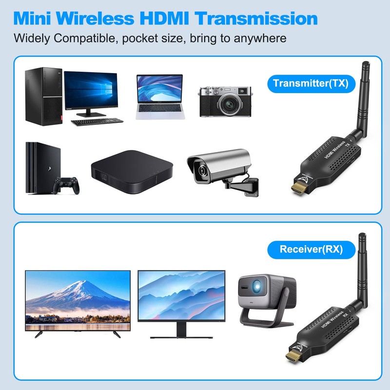 - Versatile Usage: Whether you’re in a large room or a compact space, this wireless hdmi transmitter receiver ensures a reliable connection for a wide range of environments, enhancing your viewing and streaming experience