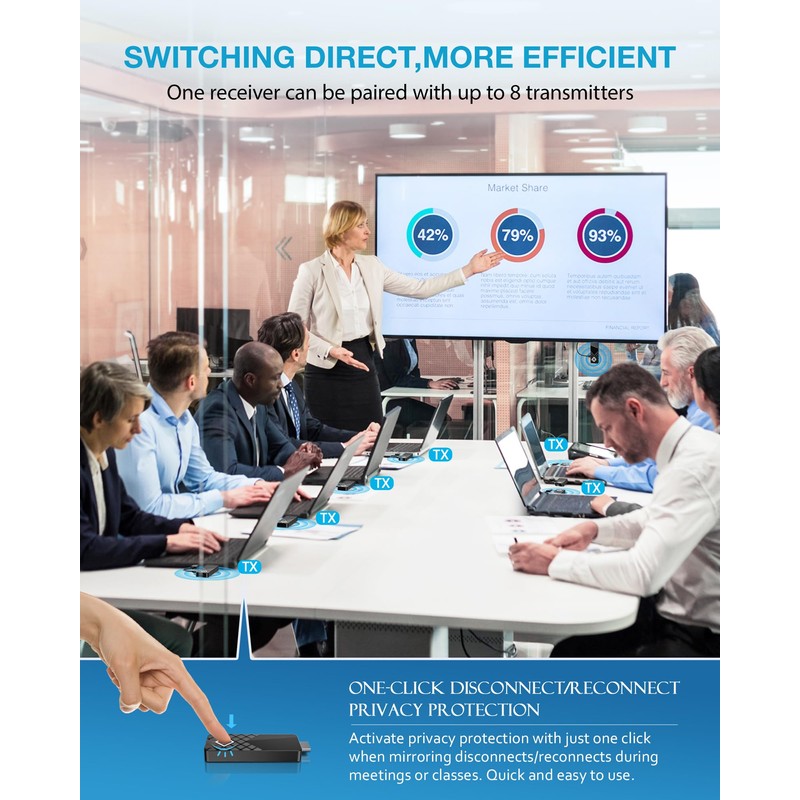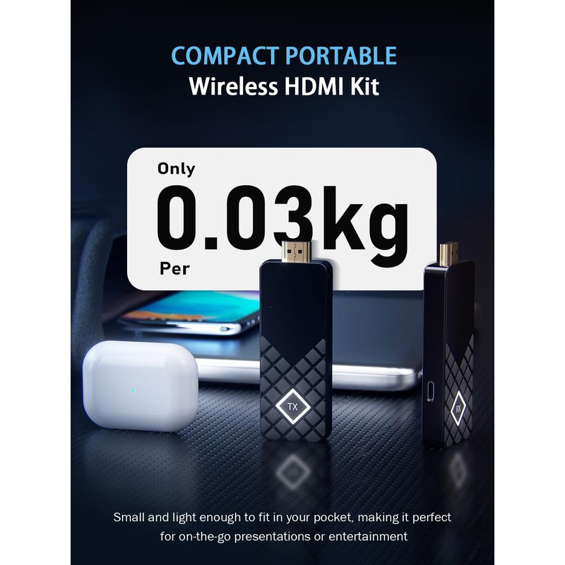 Wireless HDMI Transmitter and Receiver Kit Portable,Plug and Play 165FT 2.4/5G @60Hz HD, Extender HDMI Adapter Converter for Streaming Video from Laptop, PC to Monitor/Projector/HDTV (1RX+1TX)