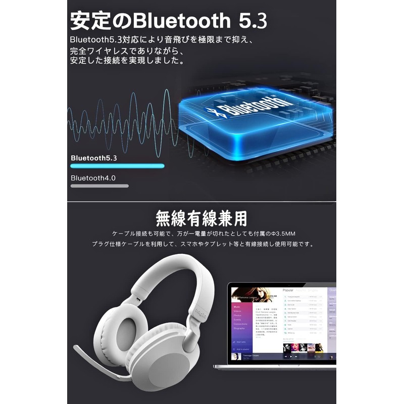 Wireless Headphones Headphones with Microphone Over Ear Headphones (2023 New, Bluetooth 5.3 + HiFi) Bluetooth Headphones, Low Latency, Sealed Sound Leak Resistant, Built-in