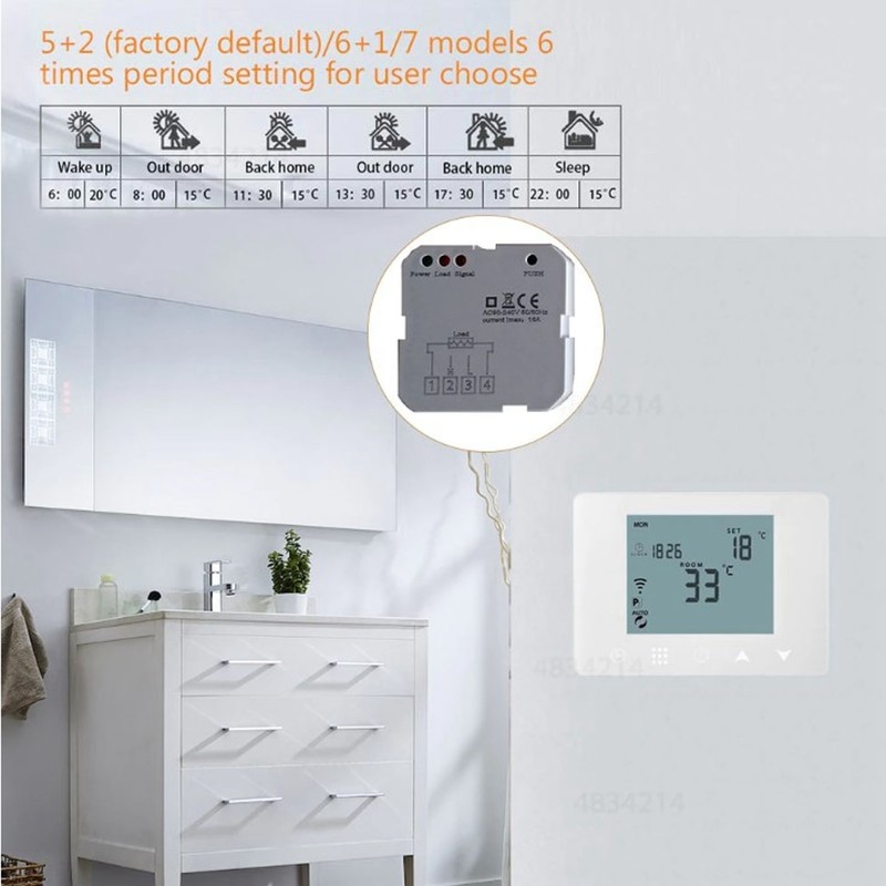1、REMOTE CONTROL: Connect with for Tuya APP, for Smart life, for RM APP to remotely control the temperature in your home, no matter where you are. 2、PROGRAMMABLE: Supports fully automatic programs or manual setup of weekly schedules, providing you with maximum convenience for different situations. 3、VOICE CONTROL: The thermostat can be controlled by voice and is very smart to provide the most comfortable temperature for your house anytime, anywhere. 4、HOME SHARING: The thermostat can be shared with your family to control the temperature of your house together through a smartphone app. 5、LCD DISPLAY: The thermostat has an LCD digital display, which is clear and easy to read, so you can quickly understand the room temperature.
